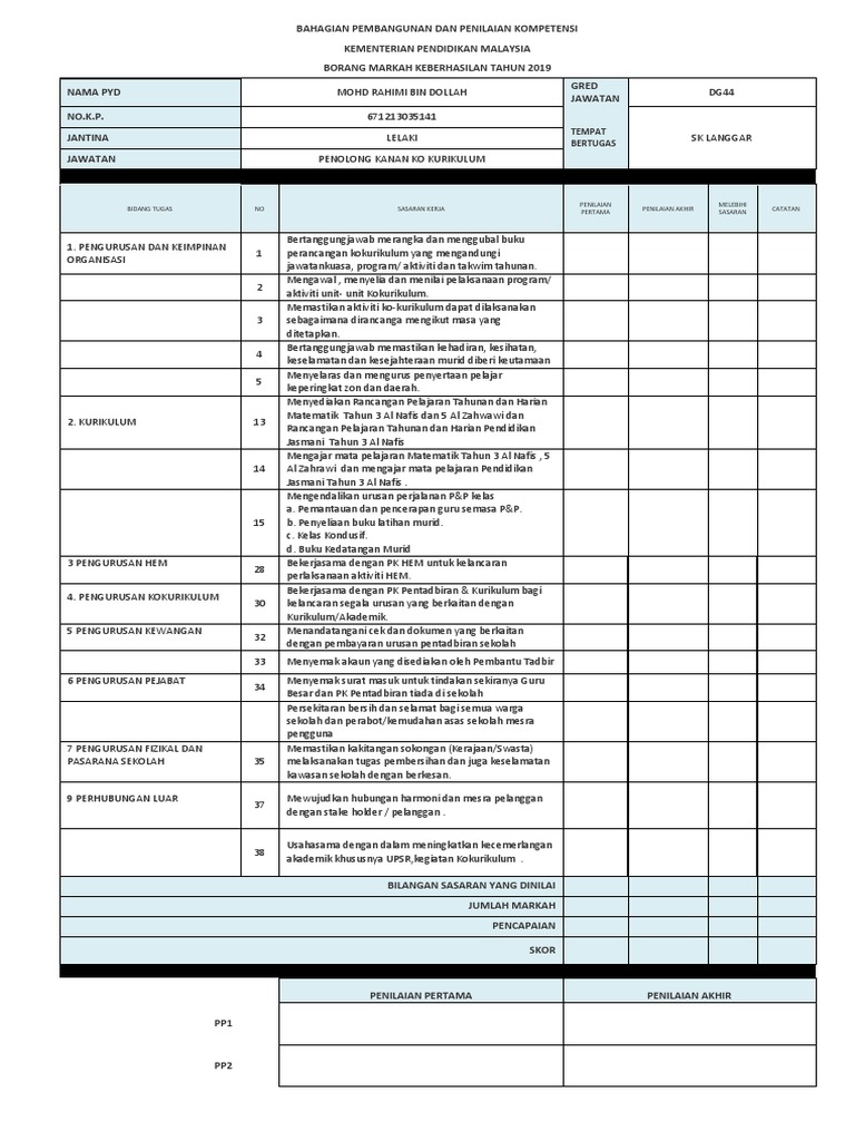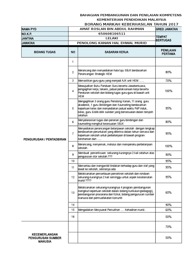 Pbppp Contoh Pengisian Borang Keberhasilan Gpk Pentadbiran Gpk Hal Ehwal Murid Gpk Kokurikulum